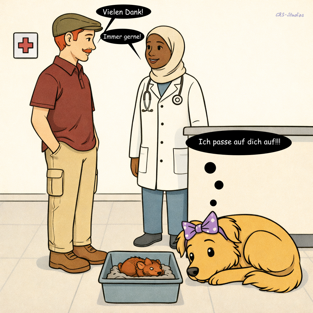 Diese ruhige, kurze Geschichte erzählt von einer Begegnung, die eine vertraute Situation verändert. Aus einem zufälligen Moment entsteht eine neue Verantwortung, die über das eigene Miteinander hinausgeht und eine andere Form von Aufmerksamkeit erfordert.