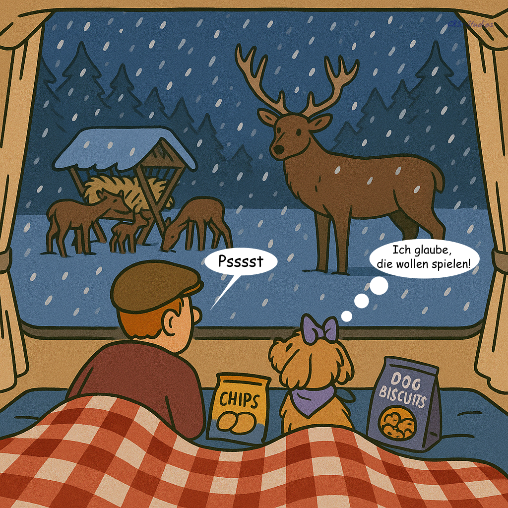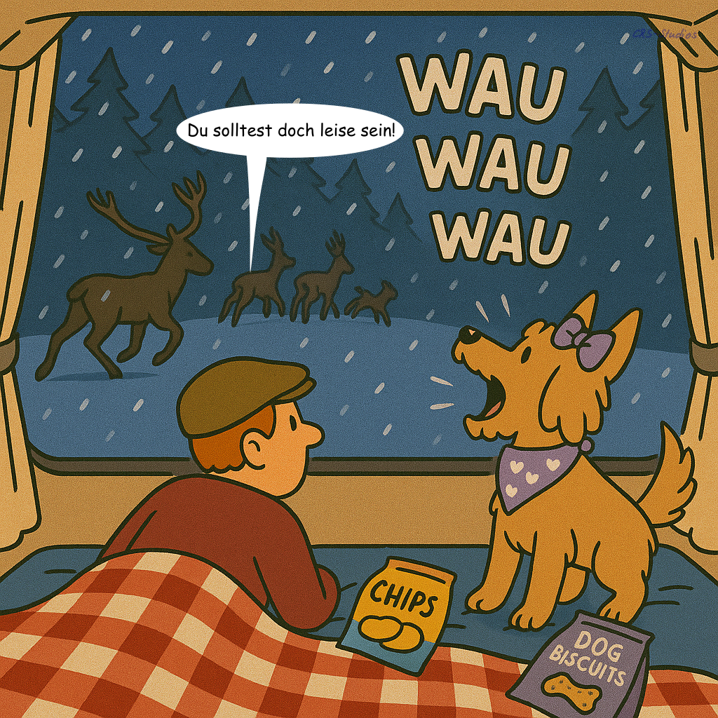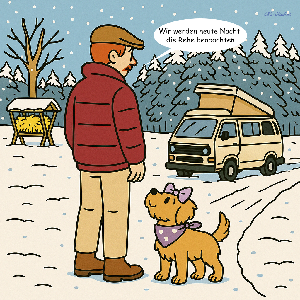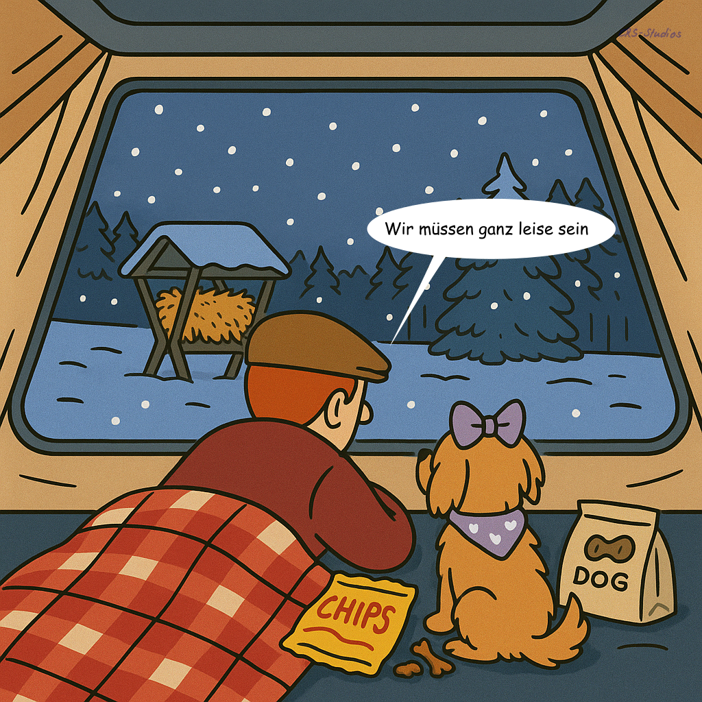 Niklas und Nikita unternehmen einen ruhigen Winterausflug in den Wald. In der Stille der Nacht beobachten sie Rehe an einer Futterstelle und versuchen, unauffällig zu bleiben. Ein Moment kindlicher Begeisterung bringt die Ruhe durcheinander, doch schließlich kehrt Frieden ein. Während draußen der Sturm aufzieht, schlafen beide geschützt ein – mitten in der Natur.