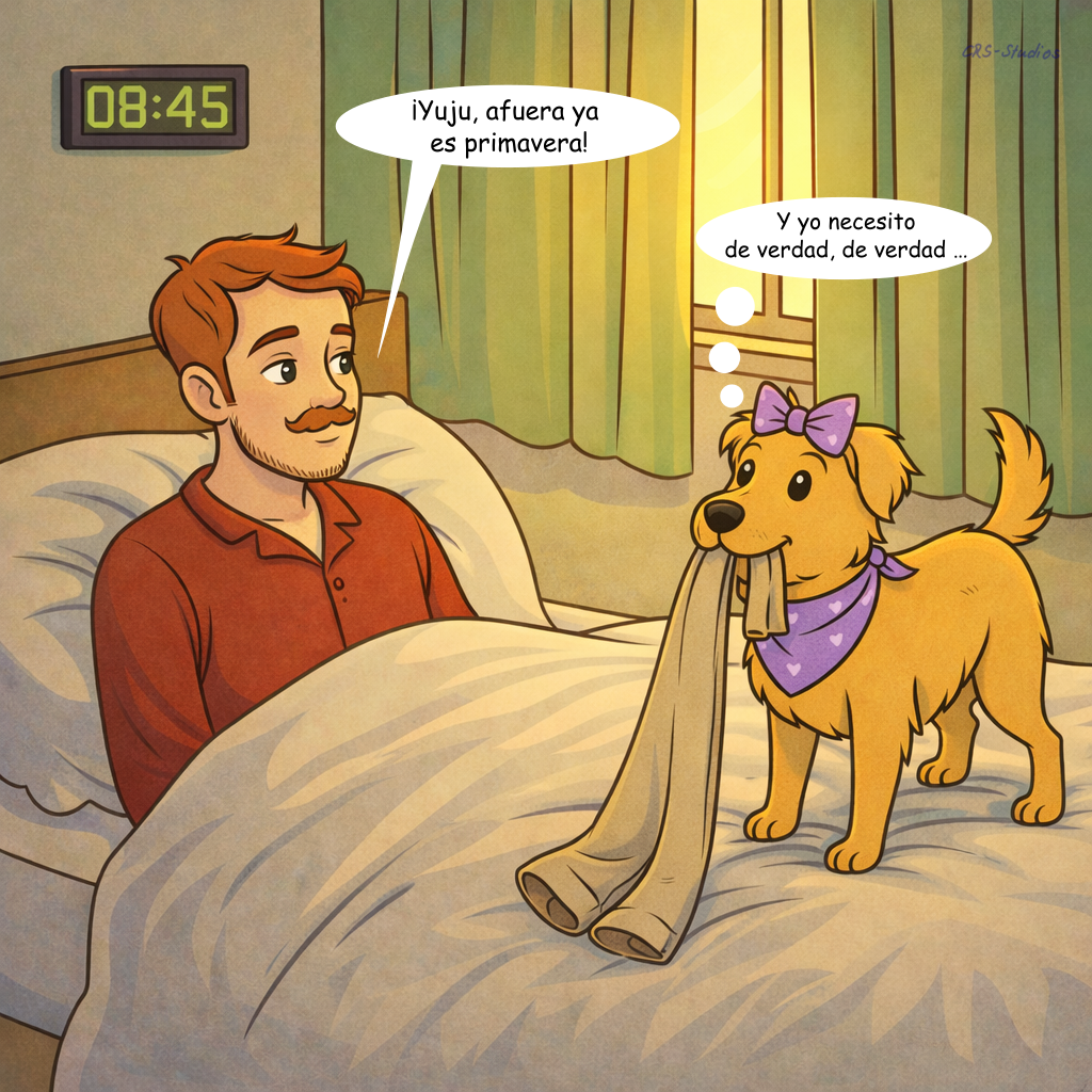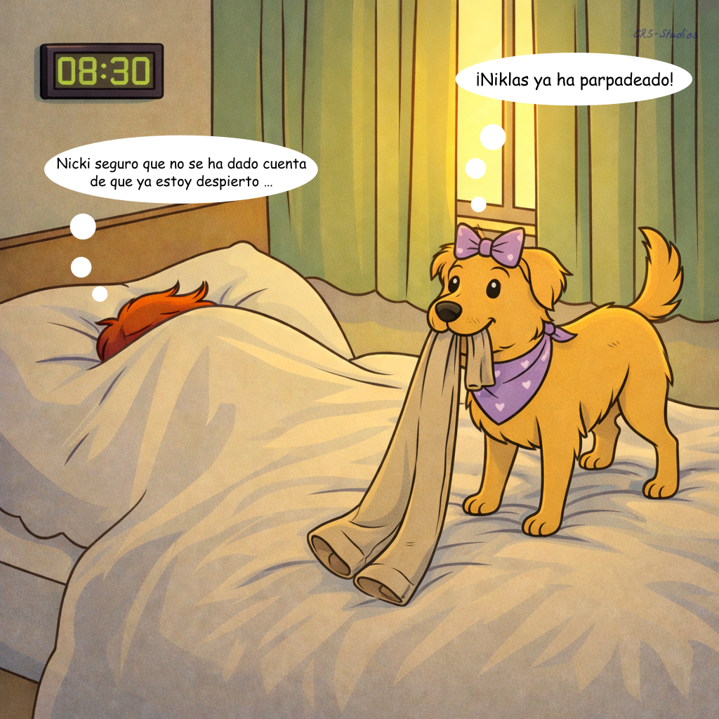Todavía no es primavera: Niklas se fía del sol, sale en polo con Nikita… y descubre demasiado tarde el frío que hace. Mientras Nikita va a lo suyo con toda calma, Niklas tiembla esperando. En casa, solo un té caliente, una manta y el calor de Nikita devuelven la paz.