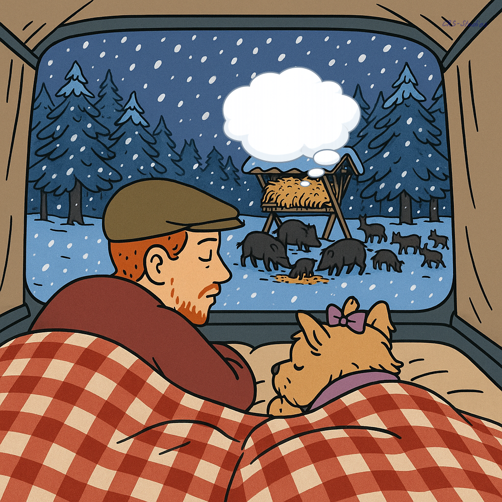 Niklas y Nikita se adentran en el bosque para una tranquila excursión invernal. En el silencio de la noche observan a los ciervos en un comedero e intentan pasar desapercibidos. Un momento de entusiasmo rompe la calma, pero pronto regresa la tranquilidad. Mientras se acerca la tormenta, ambos se quedan dormidos protegidos por la naturaleza.