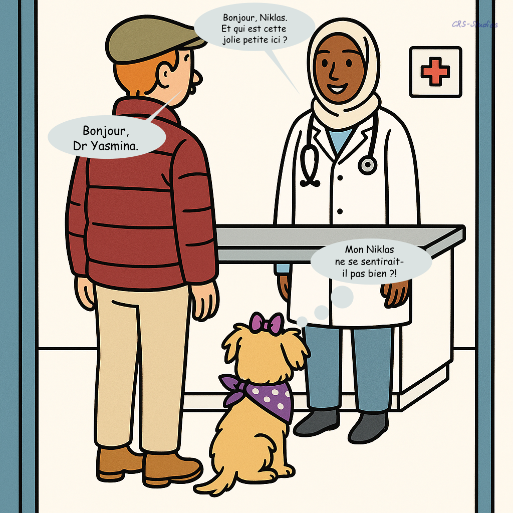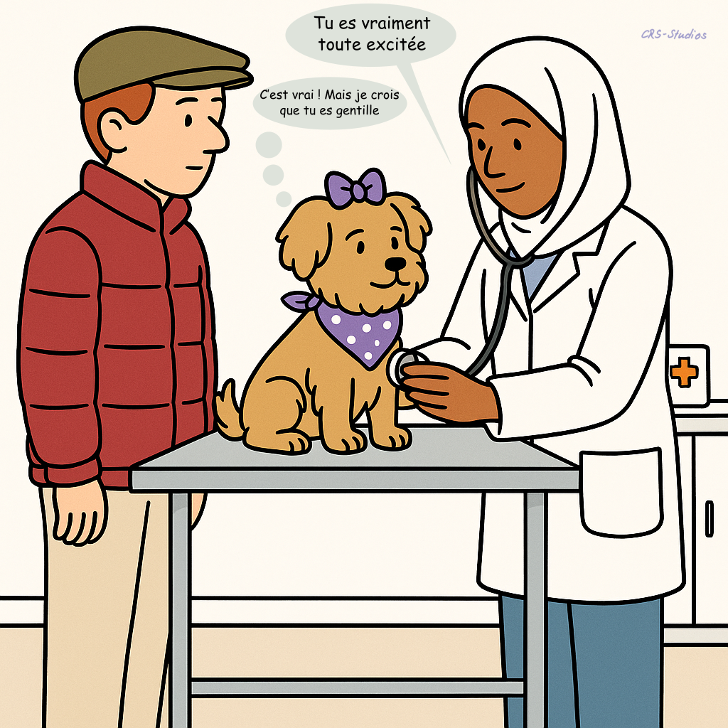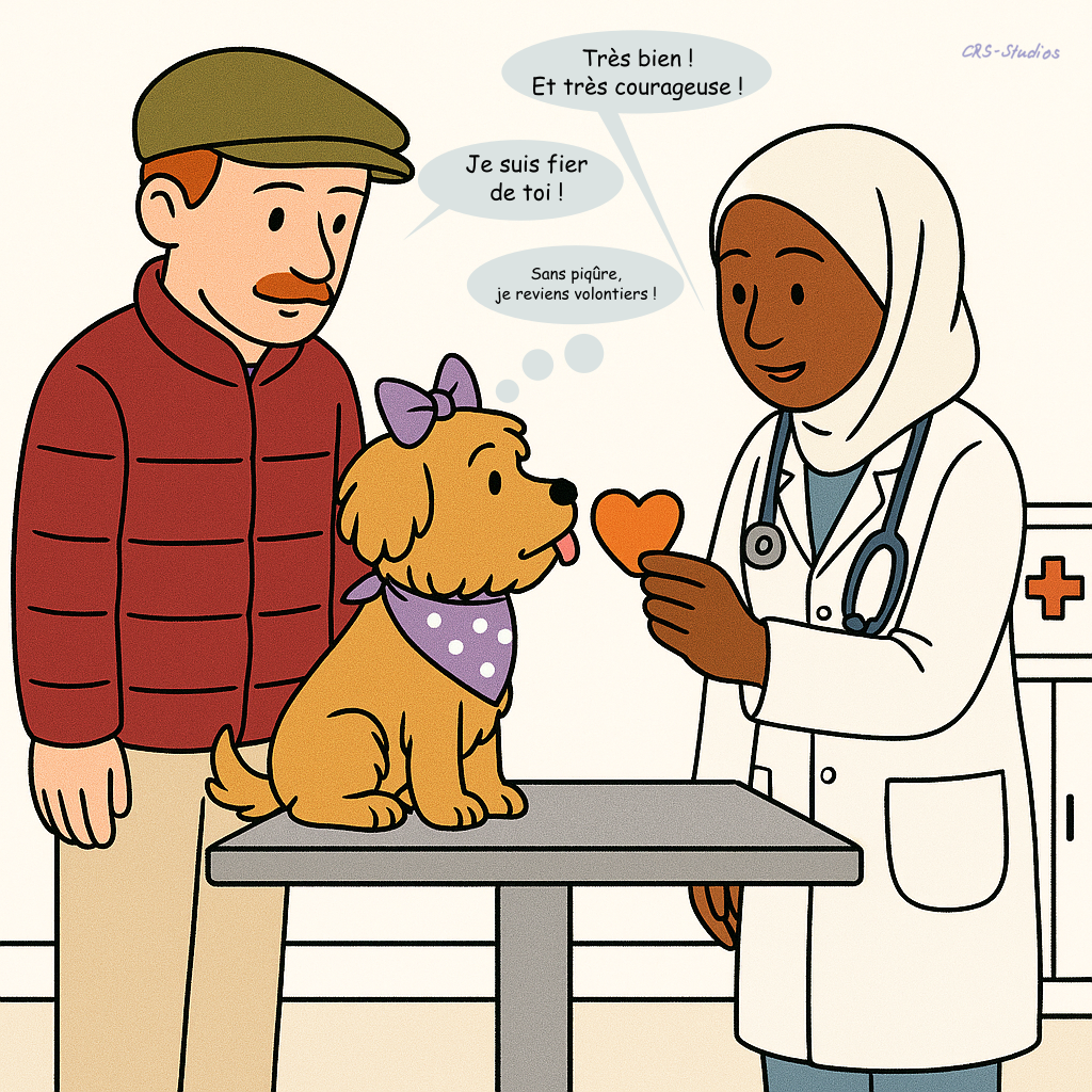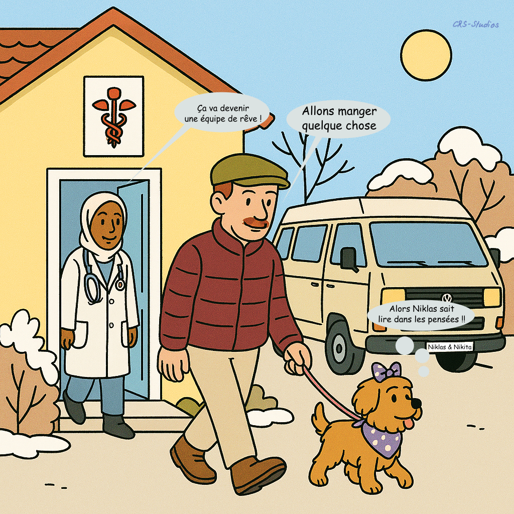 Niklas et Nikita se rendent pour la première fois chez la vétérinaire. L’examen, les explications et les gestes attentifs apportent de la sérénité. Peu à peu, la confiance s’installe. La responsabilité devient naturelle.